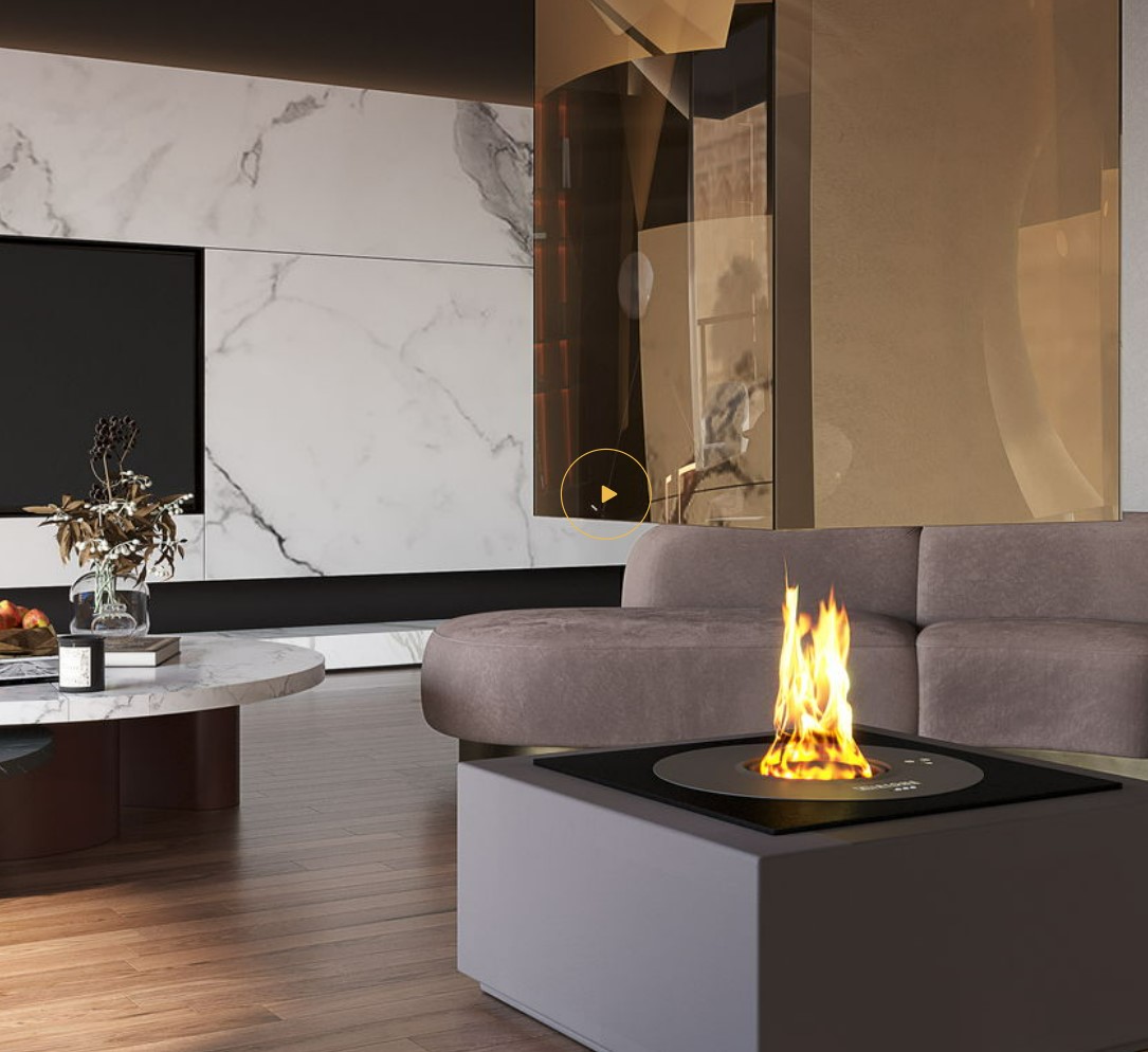 Очаг – это емкость куда заливается жидкое топливо. Емкость внутри заполняется керамическим материалом, который впитывает биотопливо, и в случае опрокидывания камина топливо не разливается. За счет этого конструкция стала полностью пожаробезопасной. Очаг встраивается в корпус из стали, который окрашивается специальной термостойкой краской, или же в заранее подготовленную нишу, изготовленную из негорючих материалов.