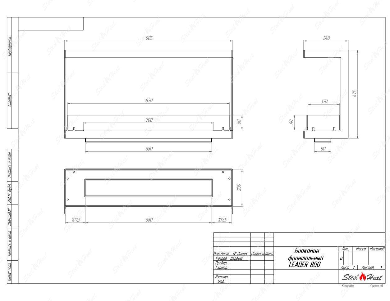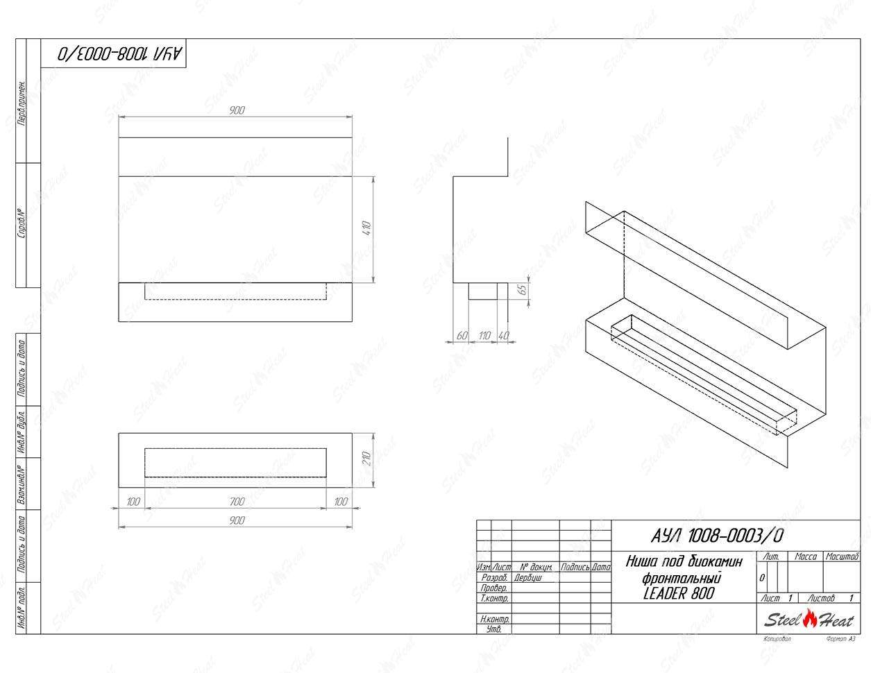 Встраиваемый Биокамин фронтальный SteelHeat Leader 800 предназначен для встраивания в глухие ниши из гипсокартона, кирпича, пеноблоков, бетона.