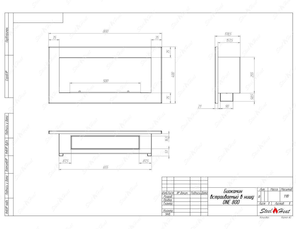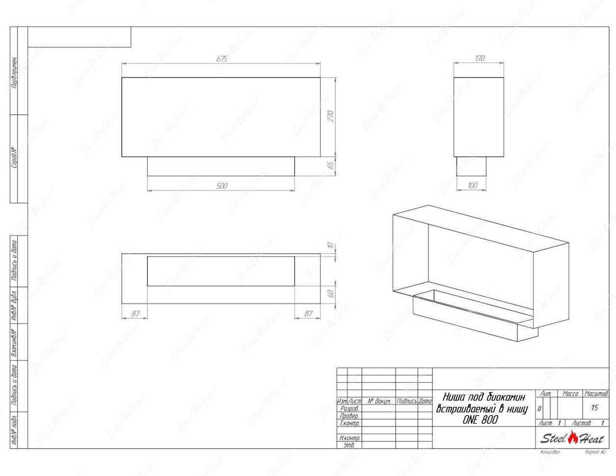 Встраиваемый Биокамин SteelHeat ONE-H 800 предназначен для встраивания в глухие ниши из гипсокартона, кирпича, пеноблоков, бетона.