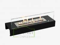 Представляет собой металлическую конструкцию с топливным блоком огражденным закаленным стеклом на дистанционных держателях, рекомендуется устанавливать в квартирах средней площади комнаты от 18 м2.