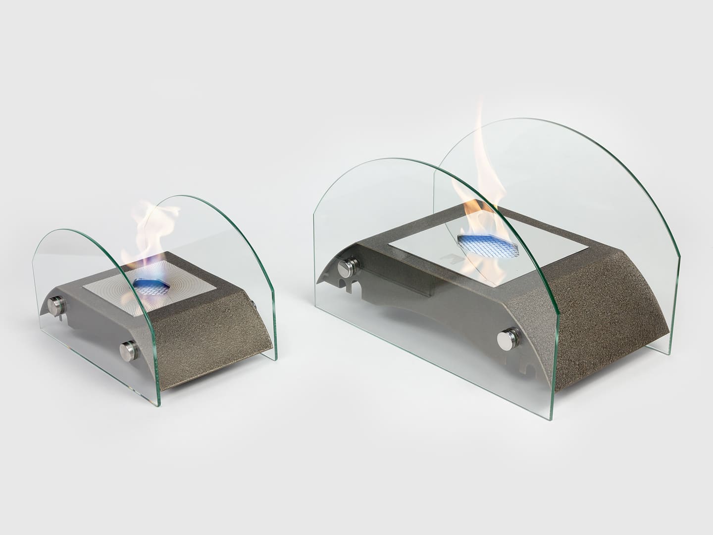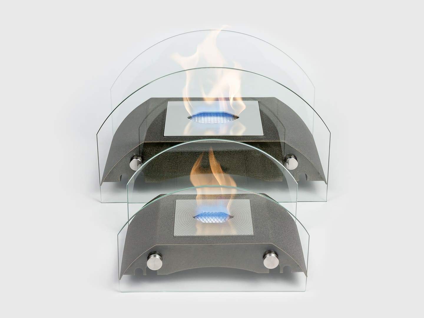 Очаг – это емкость куда заливается жидкое топливо. Емкость внутри заполняется керамическим материалом, который впитывает биотопливо, и в случае опрокидывания камина топливо не разливается. За счет этого конструкция стала полностью пожаробезопасной. Очаг встраивается в корпус из стали, который окрашивается специальной термостойкой краской, или же в заранее подготовленную нишу, изготовленную из негорючих материалов.