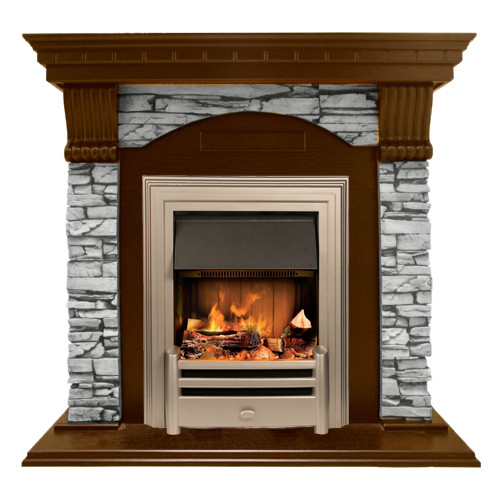 Каминокомплект «Dublin», представленный производителем Dimplex, оборудован современным паровым очагом «Chesford», в конструкции которого реализована система имитации реалистичного пламени Opti-Myst. Размеры камина небольшие, но это совсем не означает, что установка его актуальна только в маленьких по площади помещениях. Благодаря отделке камнем он визуально не потеряется даже в просторном помещении.