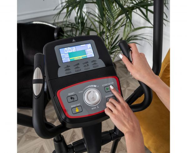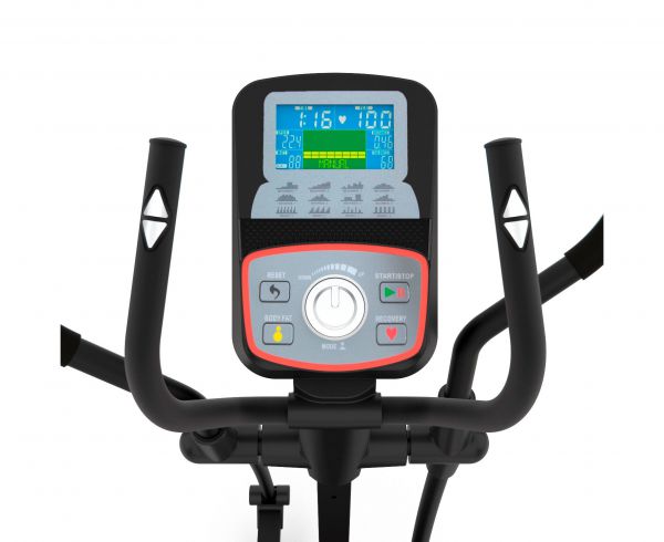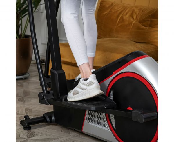 Среднегабаритный эллиптический тренажер для домашнего использования с бесшумной магнитной системой нагружения с электроприводом.